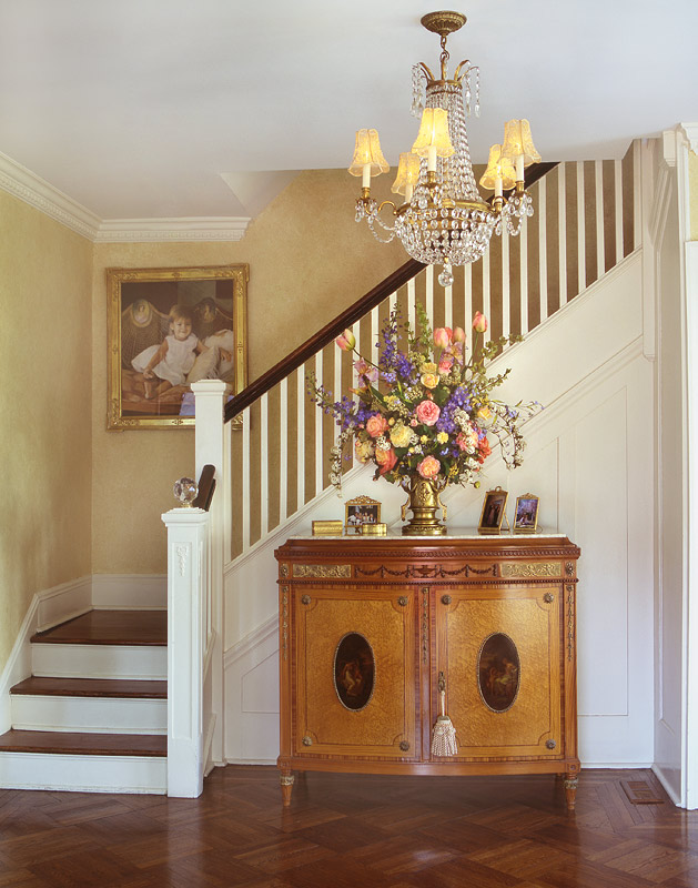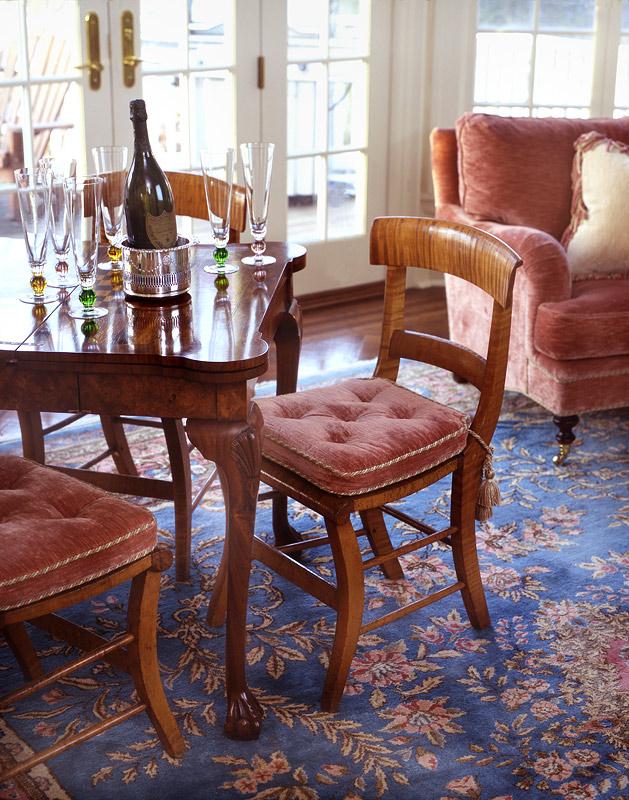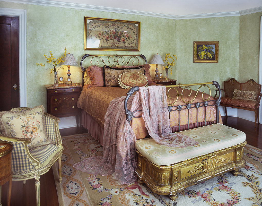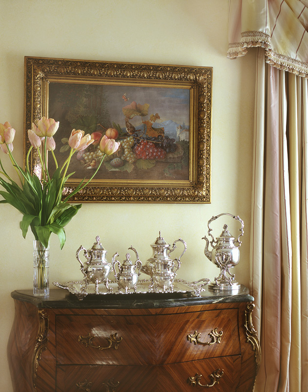 All that glitters was the theme for this classic French designed home. Guilded wood and elegant silk damask fabrics make this home a complete work in harmony.