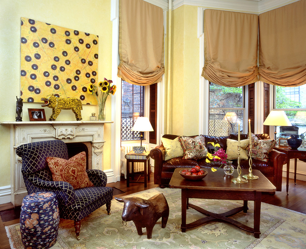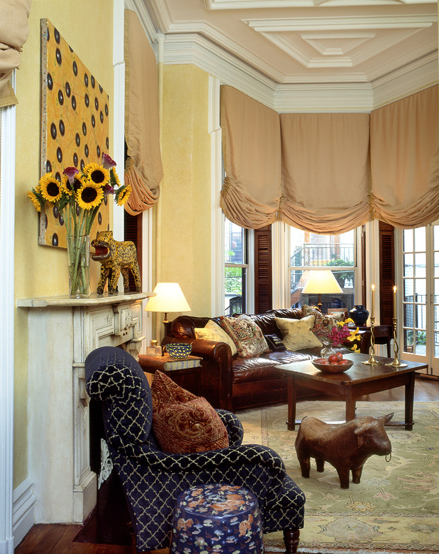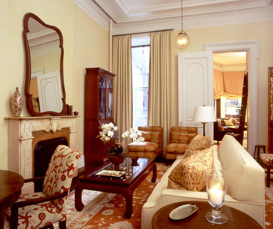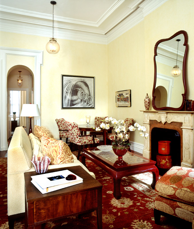 | Gramercy Park is one of New York cities most beautiful and sought after family neighborhoods. This four floor town home offers many spaces to relax and enjoy city life. Antique filled rooms with an Asian flair and a bold red and gold color pallet, coupled with the 14" ceiling height have a dramatic effect. |
