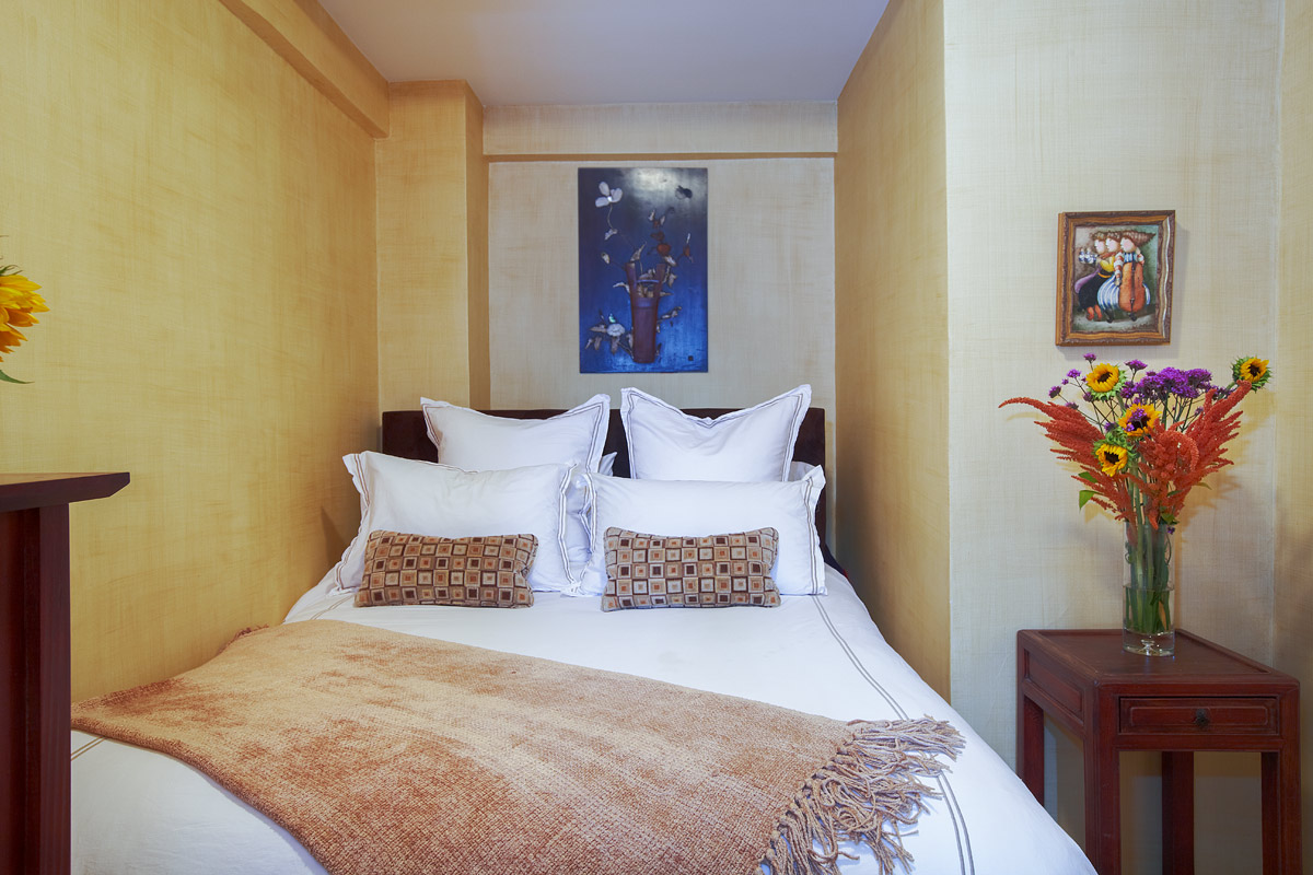 | Celebrity filled 12th street in New York city is the West Village residential Gold Coast. This sophisticated Manhattan apartment welcomes its owner and visitors with a lovely fireplace and interiors that make all feel at ease. |